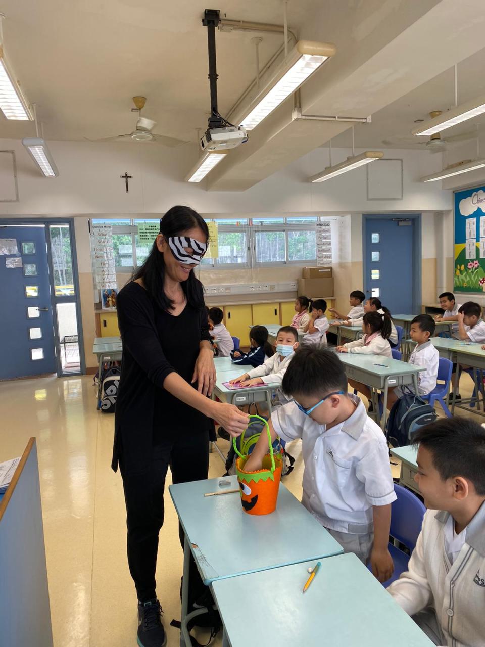 Today and for the past few days we have been decorating, sharing and celebrating the great candy and costume filled holiday of Halloween. The students loved it. Mr. Cam had Halloween recess activities in the hallways. The students got to come around during their break times to play witches hat ring toss for candy and stickers. Ms. Angel, her P5 Ambassadors and Mr. Cam set up and played Monster Mash Freeze Dance. This was a very active game for the students as they were to dance to the music and then freeze when it stopped. But, to give it the Halloween twist, we had the students freeze in the pose of various Halloween creatures they see pop up at each stopping of the music. Everyone really expressed well their Halloween spirit this year as they shouted “Happy Halloween” and “trick or treat” for just a little more extra candy.