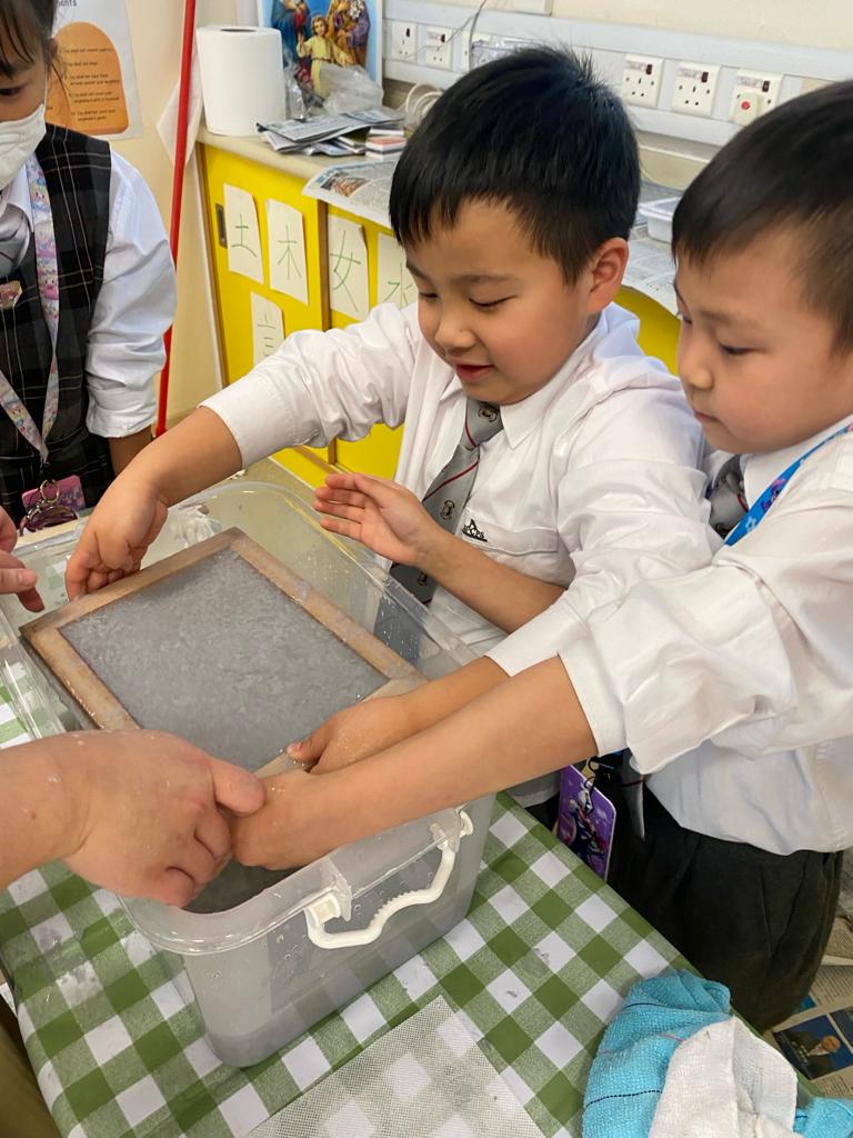 本校各級於24/11/2023(五)Happy Friday時段進行了不同環境教育活動。小一同學進行再生紙製作活動。活動結合環保、藝術及文化三個元素,同時可以認識南區地方文化。小二、小三進行小小園藝師活動,學生利用水樽製作簡單的自動澆水裝置,並學習到種植的知識及技巧。小四至六則參加了綠在鴨脷洲以「環保的重要性以及國家推行環保的工作」為主題的講座。