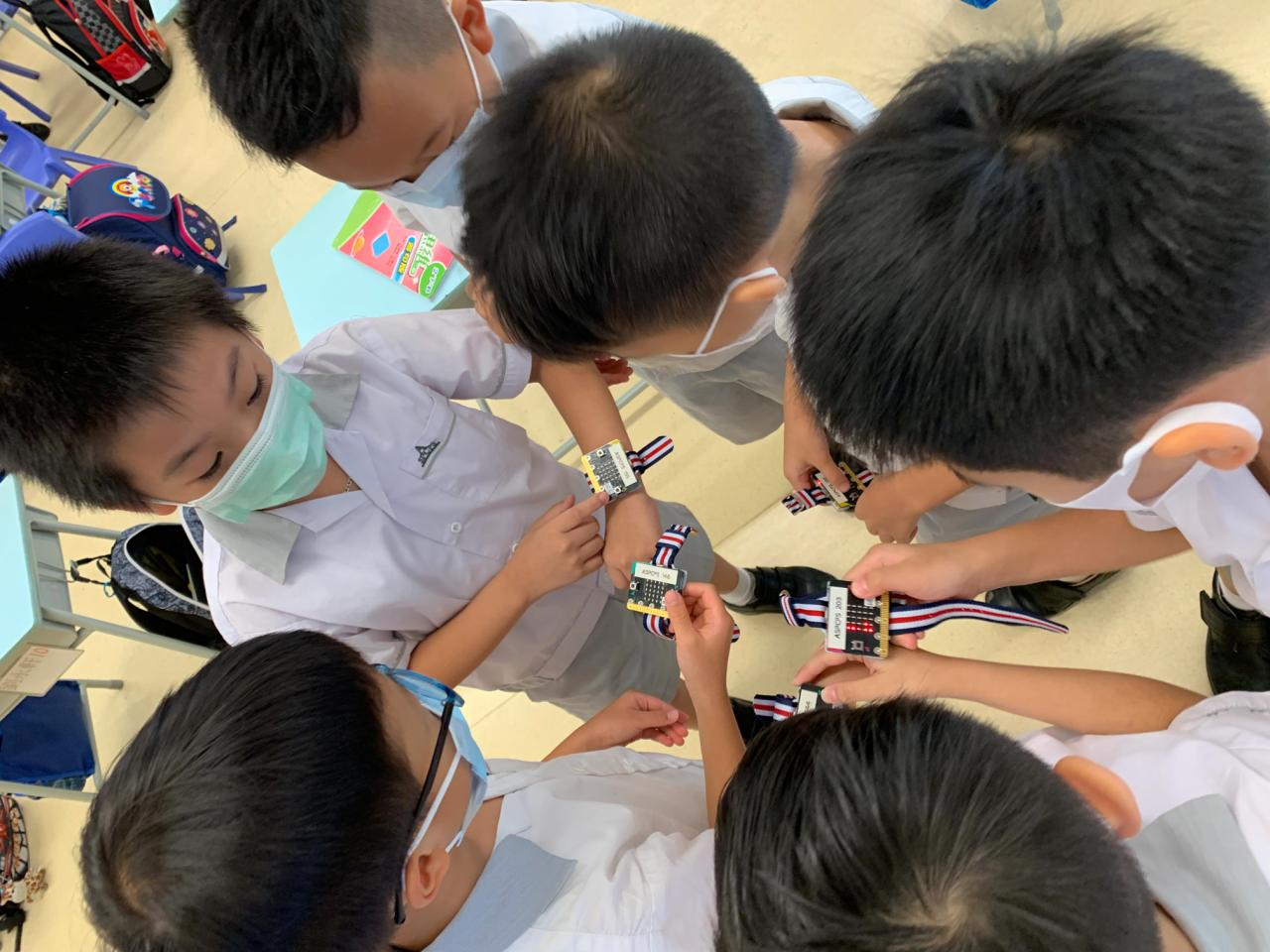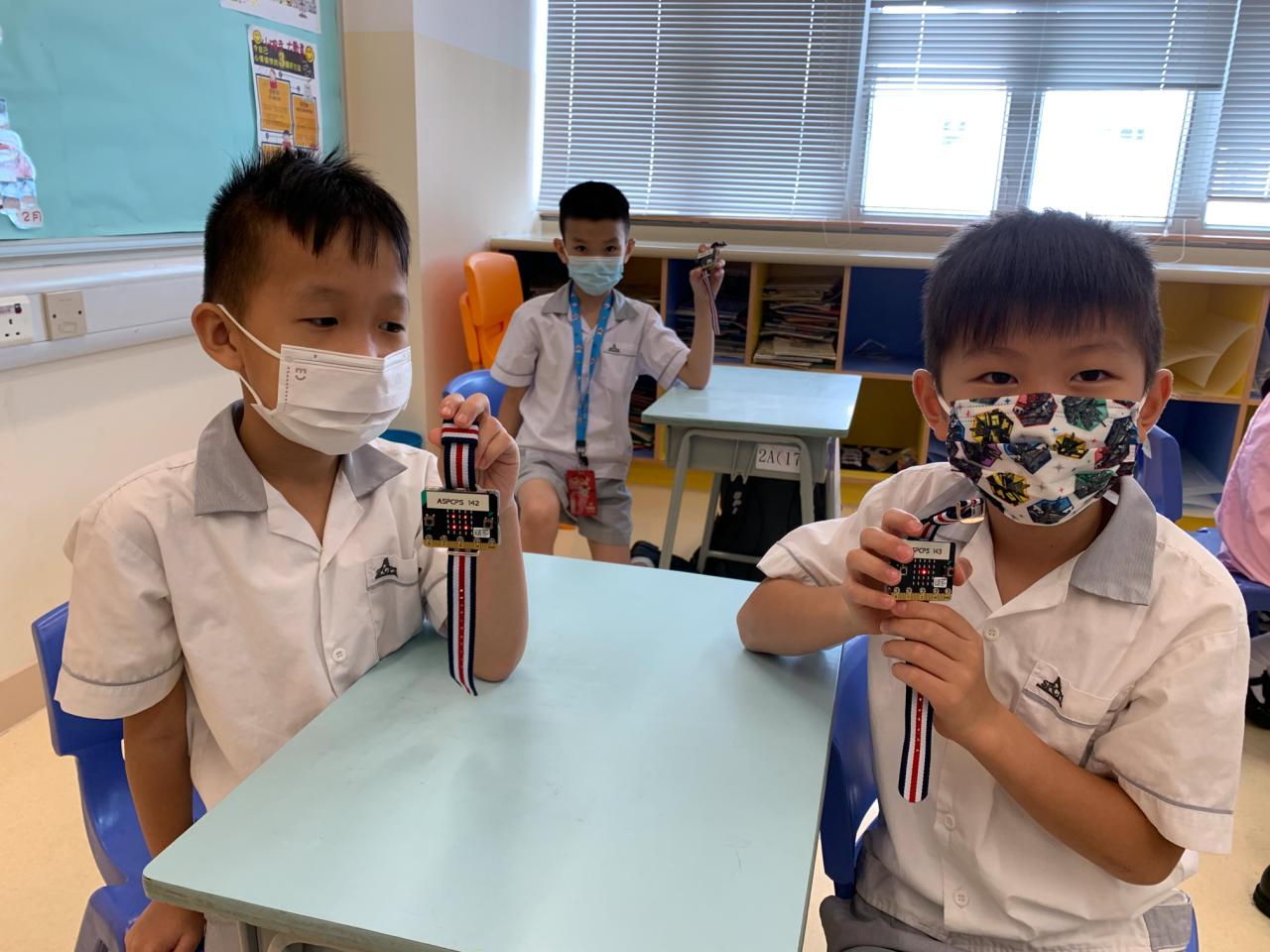 P2 學生分享 P5 學長學姐的科技成品,配合電腦科及數學科之跨學科活動,利用 micro:bit 學習測量溫度和方向