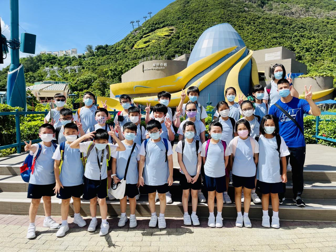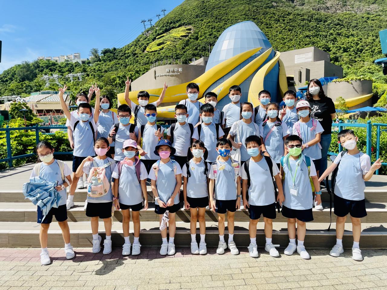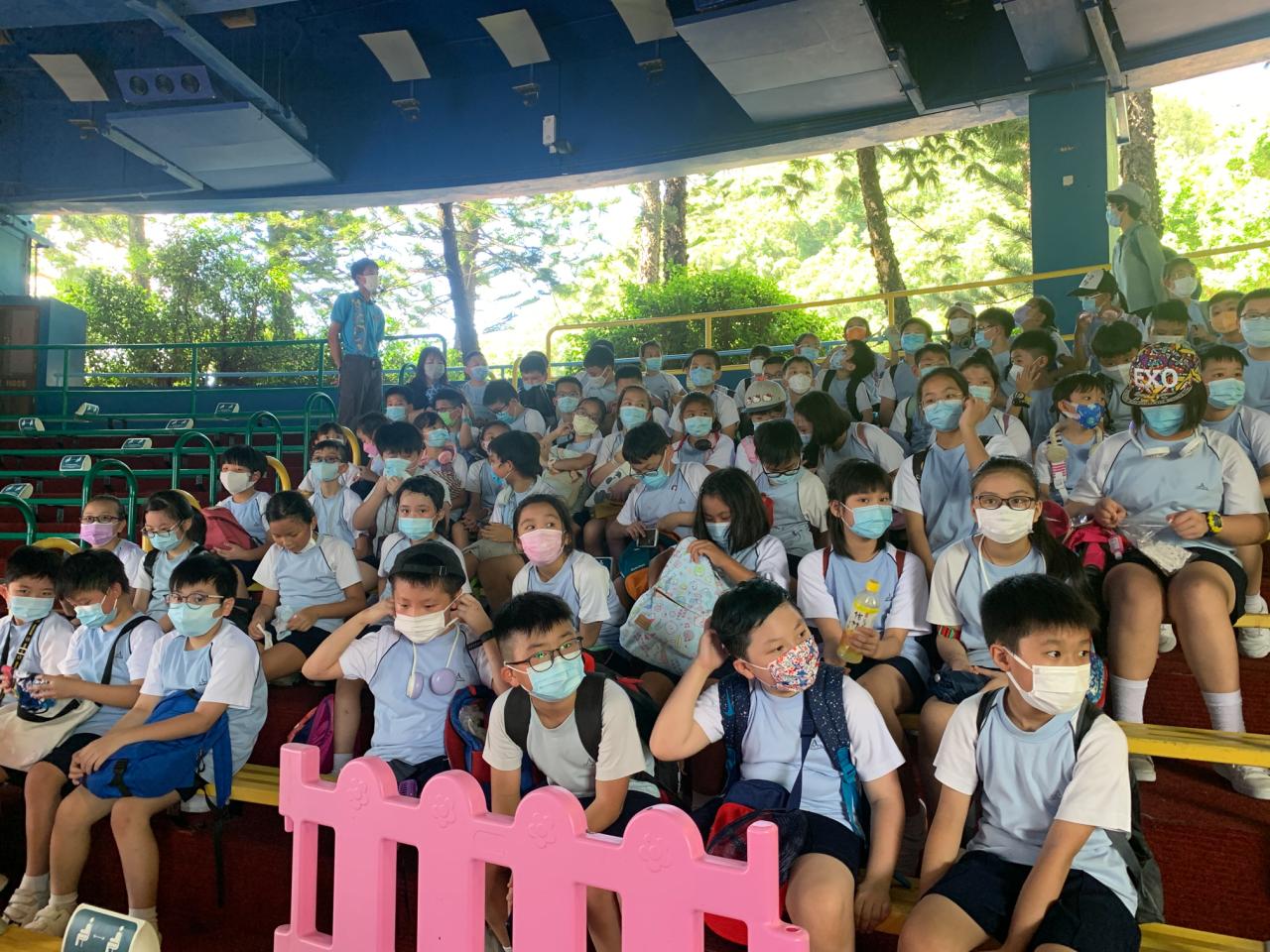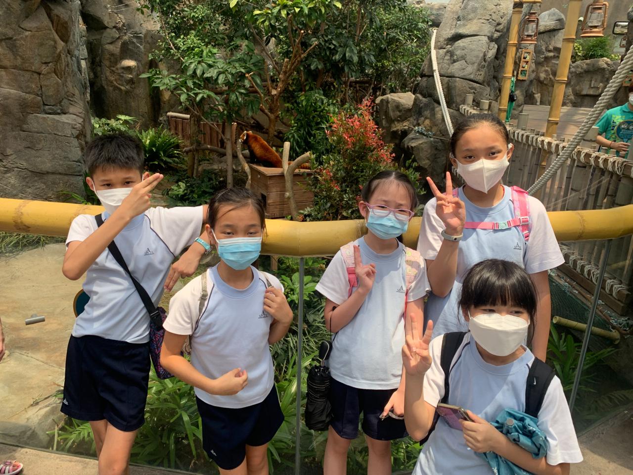 四年級同學於7月12日到海洋公園參加「熱帶雨林互動講座」。在講座中,同學透過互動遊戲,認識熱帶雨林動物—樹懶和金剛鸚鵡的特徵,又近距離觀察牠們,及了解護理員的日常護理工作。之後,同學們一同去觀看大熊貓及海洋生物。活動過程中,同學們都能積極參與並提出問題,充滿表現出活力的一面。