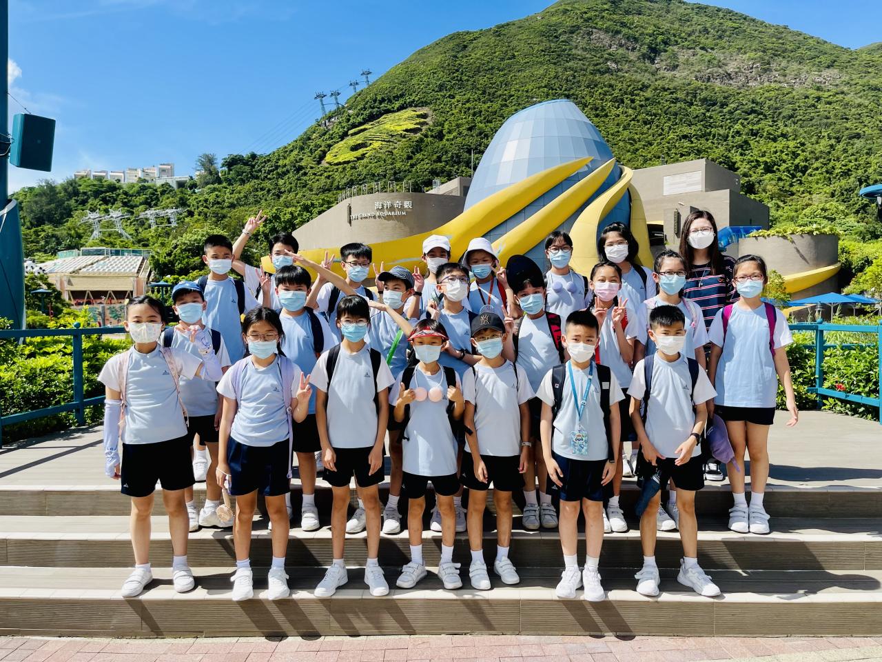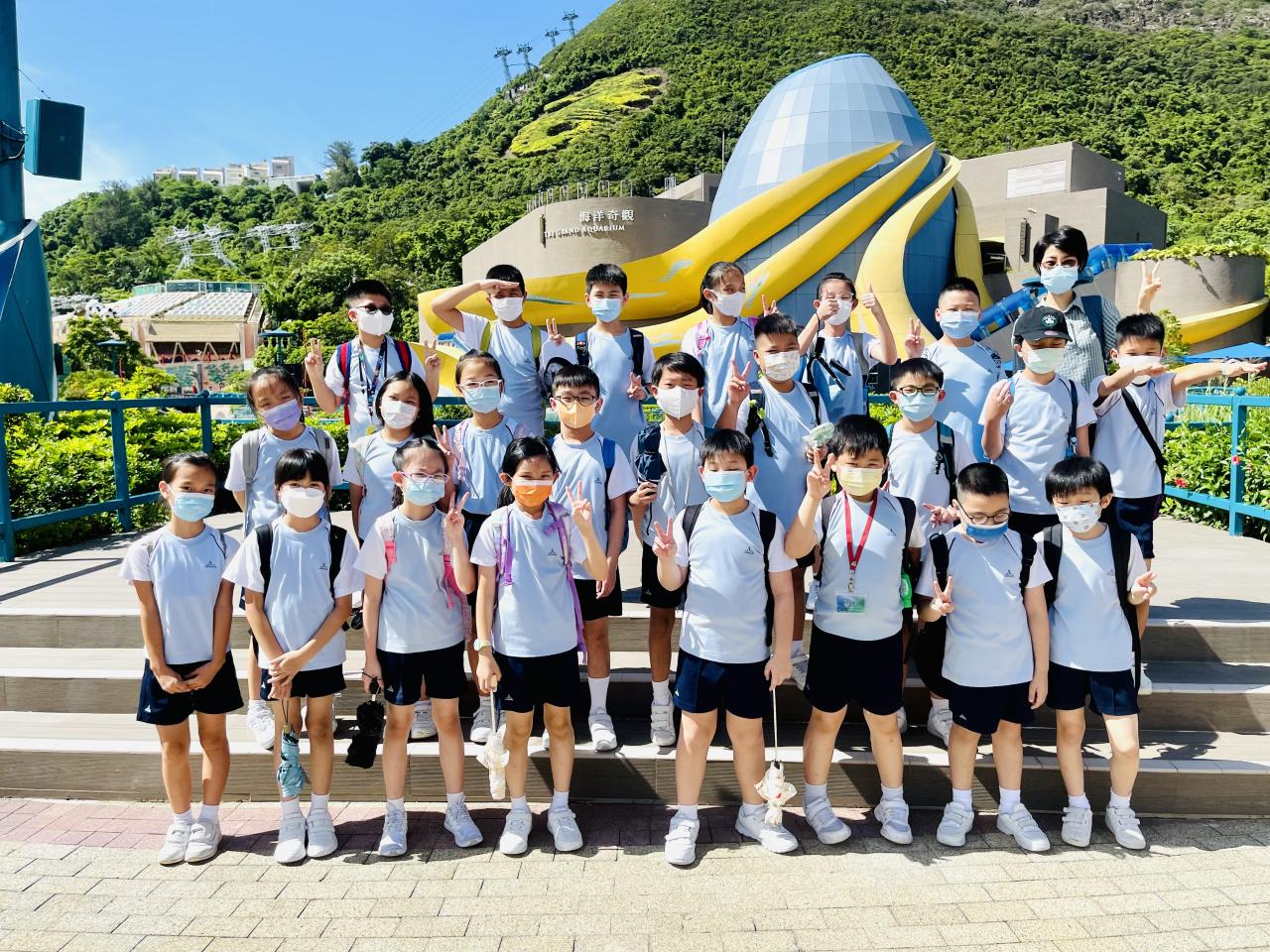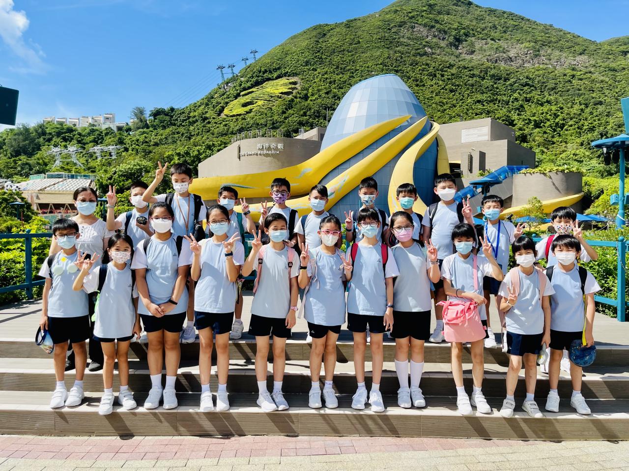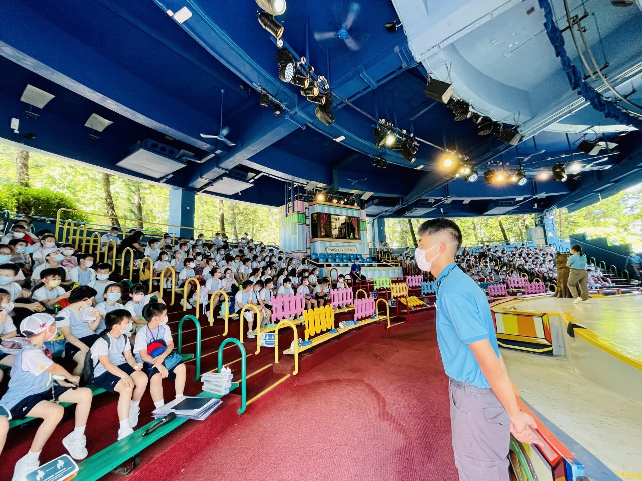 四年級同學於7月12日到海洋公園參加「熱帶雨林互動講座」。在講座中,同學透過互動遊戲,認識熱帶雨林動物—樹懶和金剛鸚鵡的特徵,又近距離觀察牠們,及了解護理員的日常護理工作。之後,同學們一同去觀看大熊貓及海洋生物。活動過程中,同學們都能積極參與並提出問題,充滿表現出活力的一面。