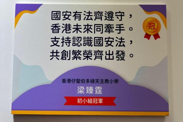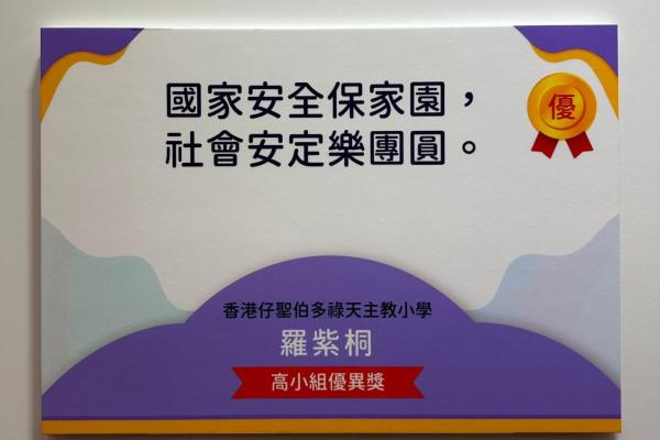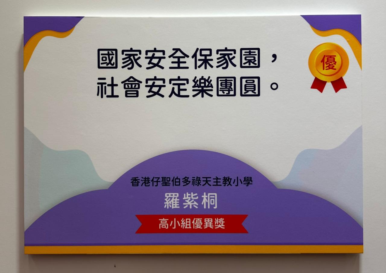 本校學生榮獲由南區民政事務處聯同南區青年團合辦之「全民國家安全教育日 南區學生標語設計比賽」初小組冠軍及高小組優異獎,名單如下: