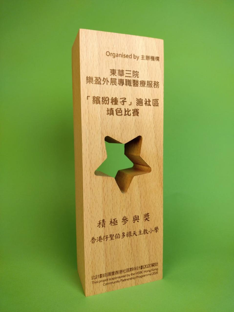 本校獲得由東華三院樂盈外展專職醫療服務舉辦之「繽紛種子」遍社區填色比賽的積極參與獎。