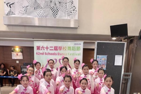 本校中國舞校隊於第六十二屆學校舞蹈節比賽中榮獲甲級獎。這次,隊員們身著漢族服飾,化身為活潑好動的女孩,舞動傳統的扇鼓,表演《扇鼓咚咚》,展現歡欣雀躍的心情,迎接幸福快樂的每一天。舞者動作剛柔並濟,節奏感強,舞台表現力極佳,展現精湛技藝與團隊默契,獲得評審與觀眾一致好評。本校感謝指導老師的細心栽培與家長義工的後勤支援。隊員們經過刻苦排練,充分展現本校藝術教育成果,期盼未來再攀高峰,繼續為校爭光。