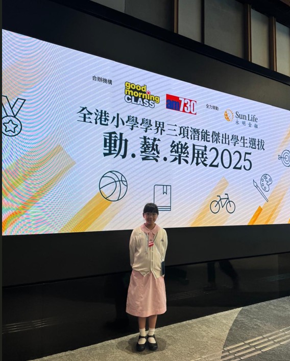 過去十年Good Morning Class一直致力讓孩童、年青人藉不同的機會而加深認識及發掘自我內在潛能。本年度Good Morning Class聯同本地著名媒體am730聯合主辦,並獲永明金融冠名贊助,首個以表揚學生天賦才能的活動 –「全港小學學界三項潛能傑出學生選拔2025」,旨在為小學學界發掘一群學科以外三大範疇 – S運動、A藝術、M音樂具潛能的學生,透過嘉許禮上的公開表揚以肯定其天賦外,更勉勵他們需加以努力,在適當的培育下將這份潛能優勢無限發揮。本校有3位學生成功入選本屆「潛能學生獎」,獲獎學生分別是葉希慧(畢業生),6A陳苑朵,6A莊楚翹,藉此鼓勵,希望她們能在不同的領域上繼續展現個人潛能,在學習過程上發光發亮。