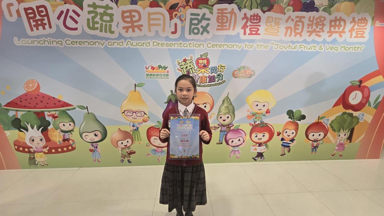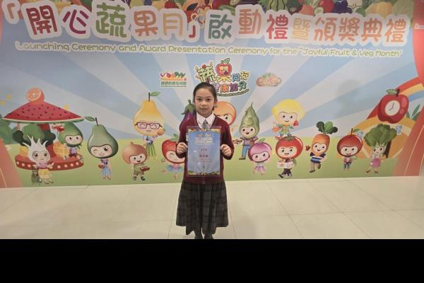 本校4E班馮梓棋同學於衞生署舉辦的「『進食充足蔬果』─ 填色創作比賽2026」中,憑藉出色的創意與細膩的填色技巧,榮獲優異獎。 是次比賽旨在鼓勵學生透過藝術創作,認識均衡飲食及多吃蔬果的重要性。馮梓棋同學的作品不僅色彩豐富、構圖生動,更能充分傳達健康飲食的正面訊息,獲得評審一致讚賞。 校方祝賀馮梓棋同學的卓越成就,並以此為榮! 願這次比賽鼓勵更多同學多吃蔬果,養成健康的飲食習慣。