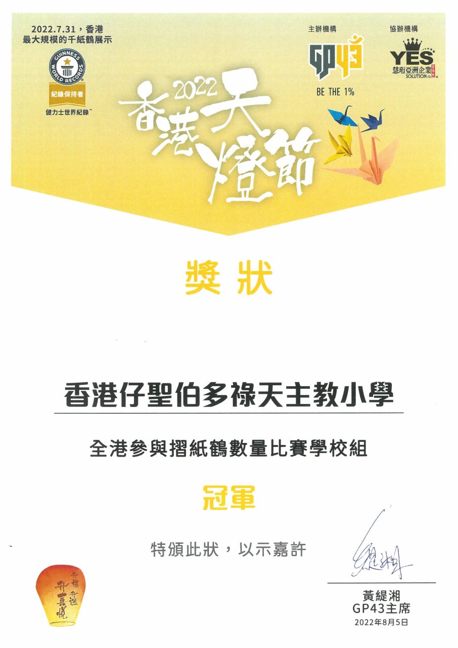 2022香港天燈節全港參與摺紙鶴比賽冠軍