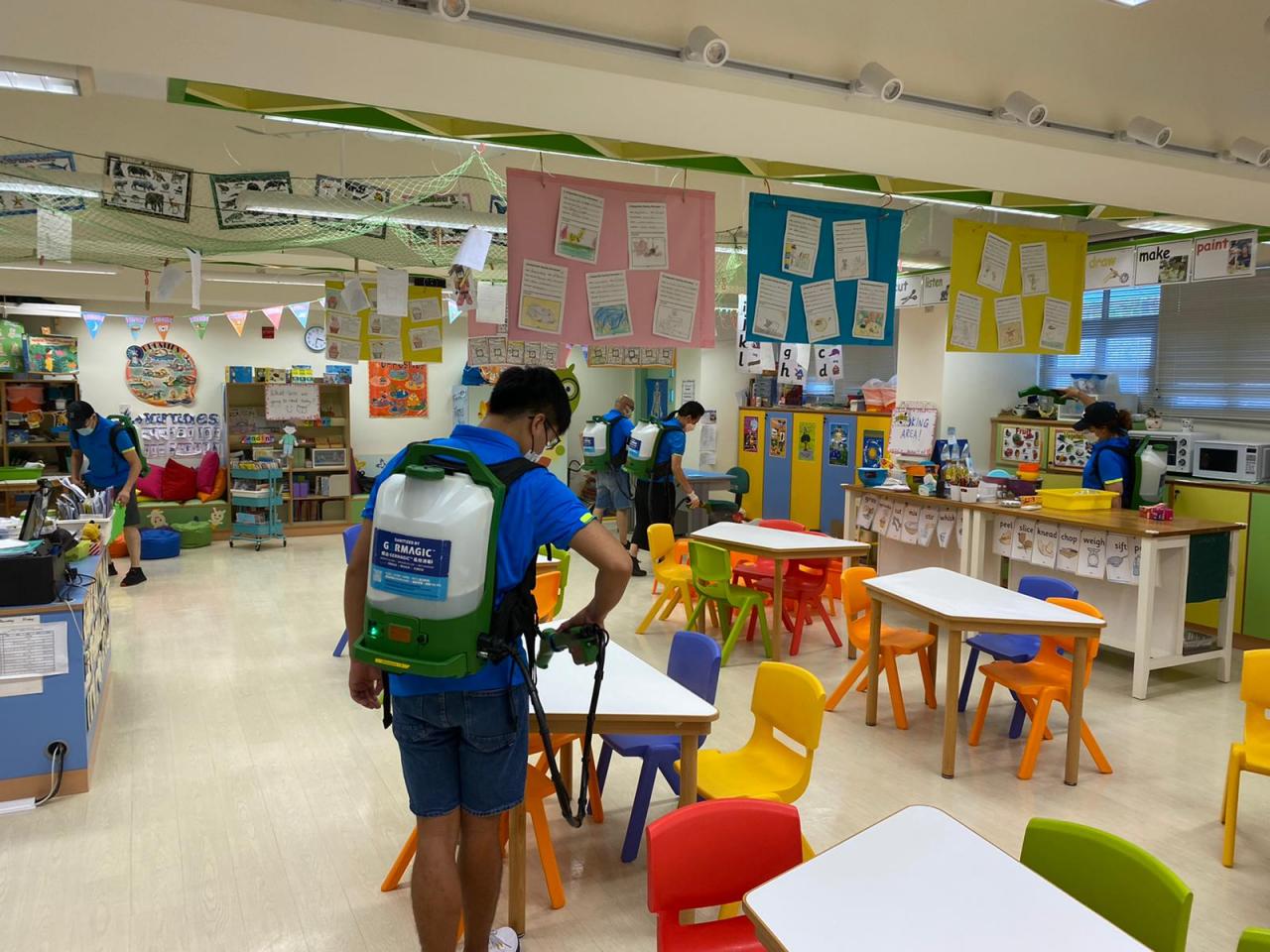本校委託認可承辦商於 15/2/21 為全校室內外噴灑長效抗病毒塗層。此塗層由香港科技大學研製,有效期為三個月,而是次噴灑已是本學年的第四次了。此外,本校本年度亦聘請了額外人手,在每個上課天專責消毒工作,以確保同學們能在一個安全、衞生的環境中回校參與面授課堂。