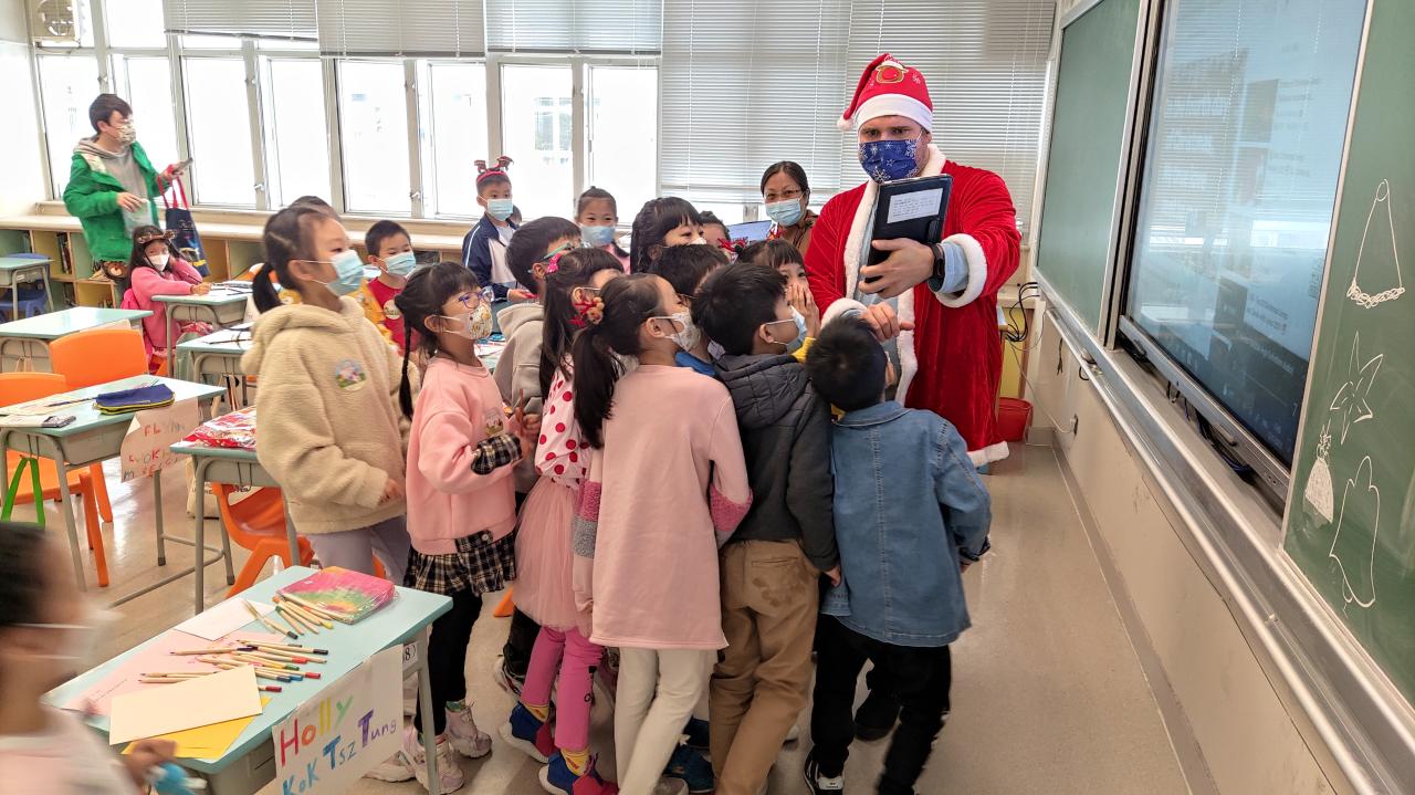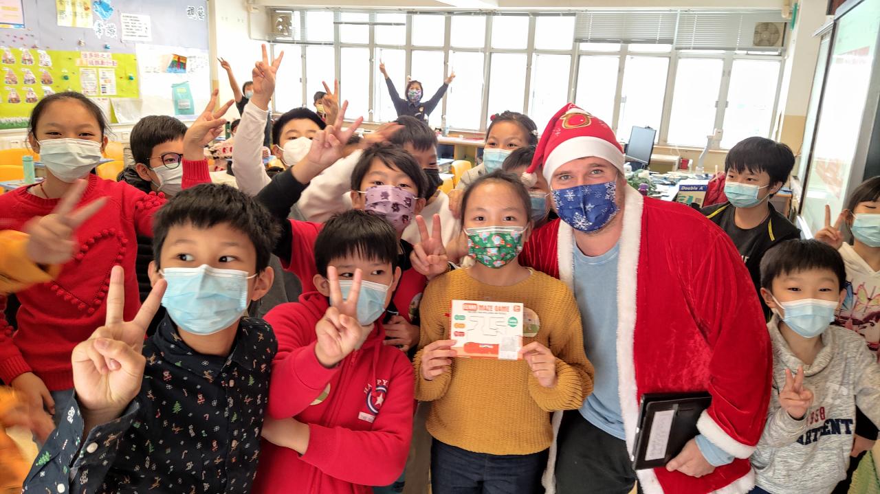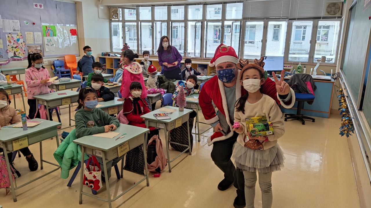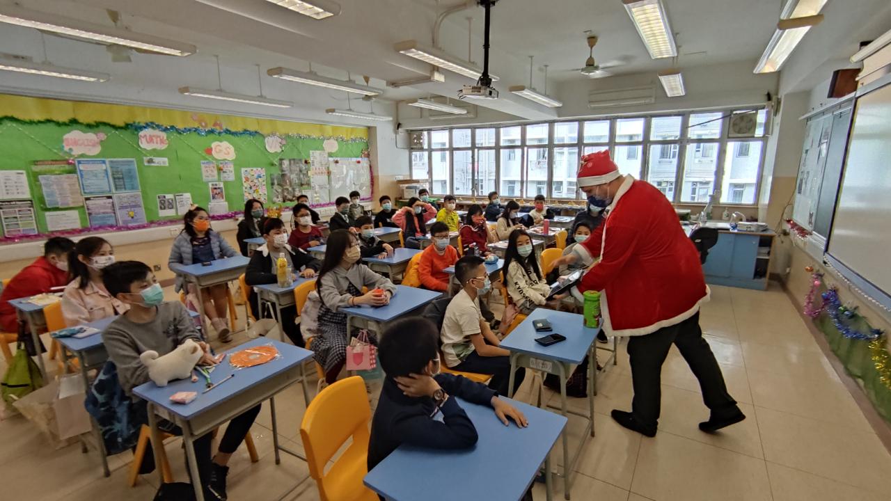 Mr. Cam(NET teacher)更化身聖誕老人,到各班玩遊戲和抽獎,與同學一同歡度聖誕。
